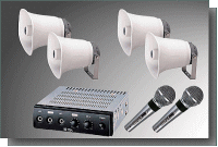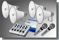| ・スピーカー×4 ・ミキシングアンプ×1 ・有線マイク×2 ・配線コード一式 |